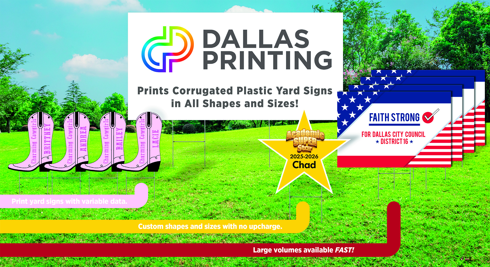DALLAS PRINTING is the leading printing company for excellent quality corrugated plastic yard signs printing in Dallas TX with quick turnaround, outstanding pricing, and friendly, professional service. Contact us for a quote or to get started!